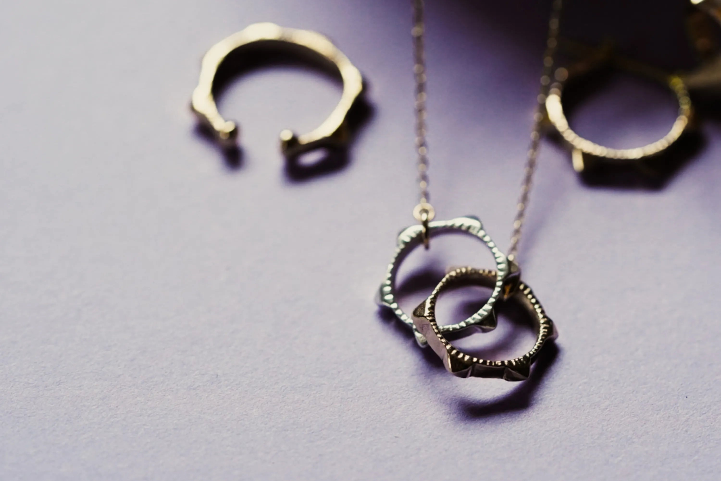 ー KAORUでは、素材が持つ本来の質感や風合いを生かし、「ゴールドコレクション」、「シルバーコレクション」それぞれを中心に、これまでクリエイションをしてきました。その中、このStudsネックレスは、シルバーとゴールド(K10)の2つの、「Studsリングの輪」が胸元で結びつき(=TIE)、ほどよく動きが生まれる新たなデザインで登場。