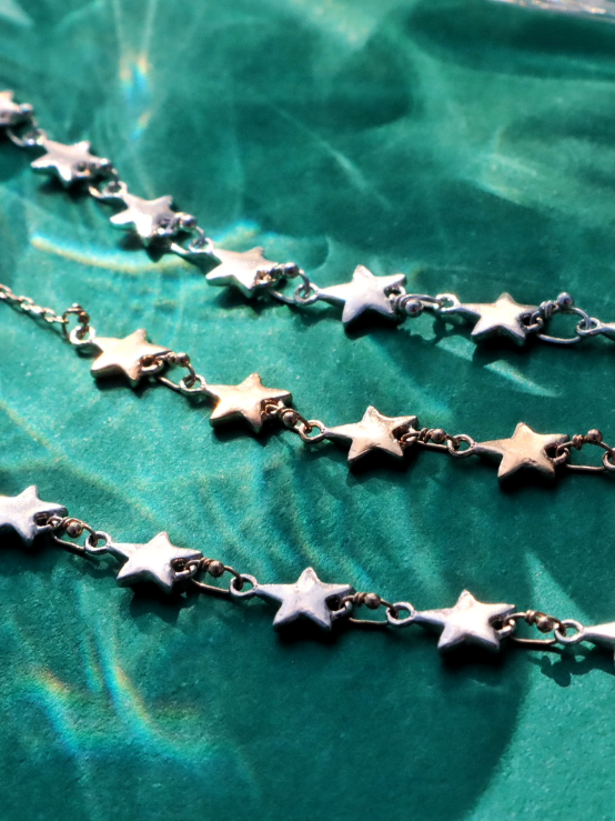 今回登場する新作「Glitter(Star)」、そんな悠久の輝きを確かな質感で繋ぎ止めるコレクションです。核となるのは、星を単なる「点」ではなく、連続する「編み目」として捉えた造形美。職人が特注のピンで一つひとつ編み上げた星たちは、天球儀のようなふっくらとした立体感を宿しています。