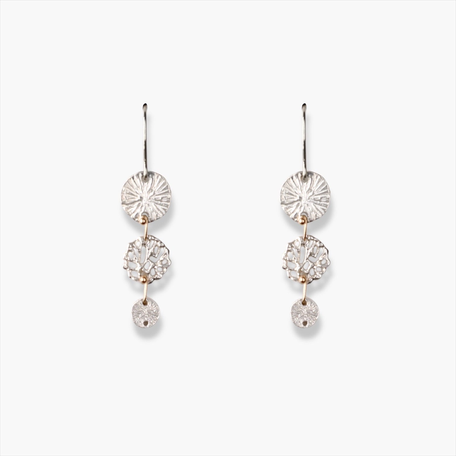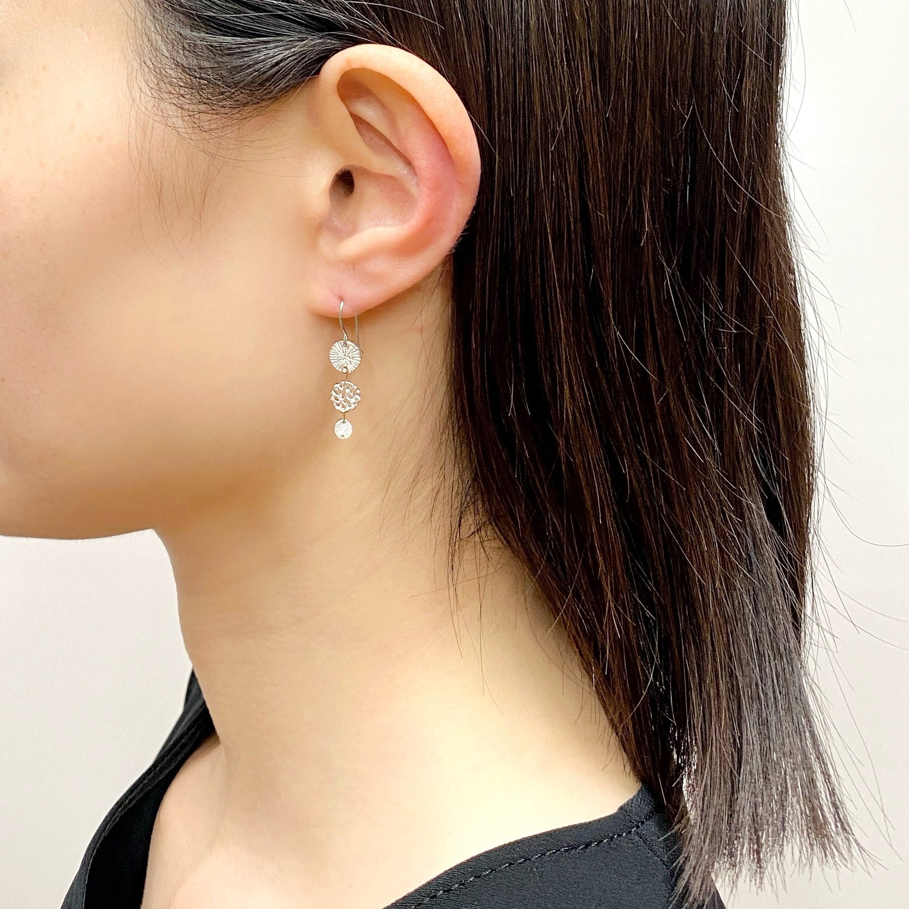 上からグラデーション状に大きさの異なるモチーフを配することで生まれた上品な揺れ感が魅力のピアス。