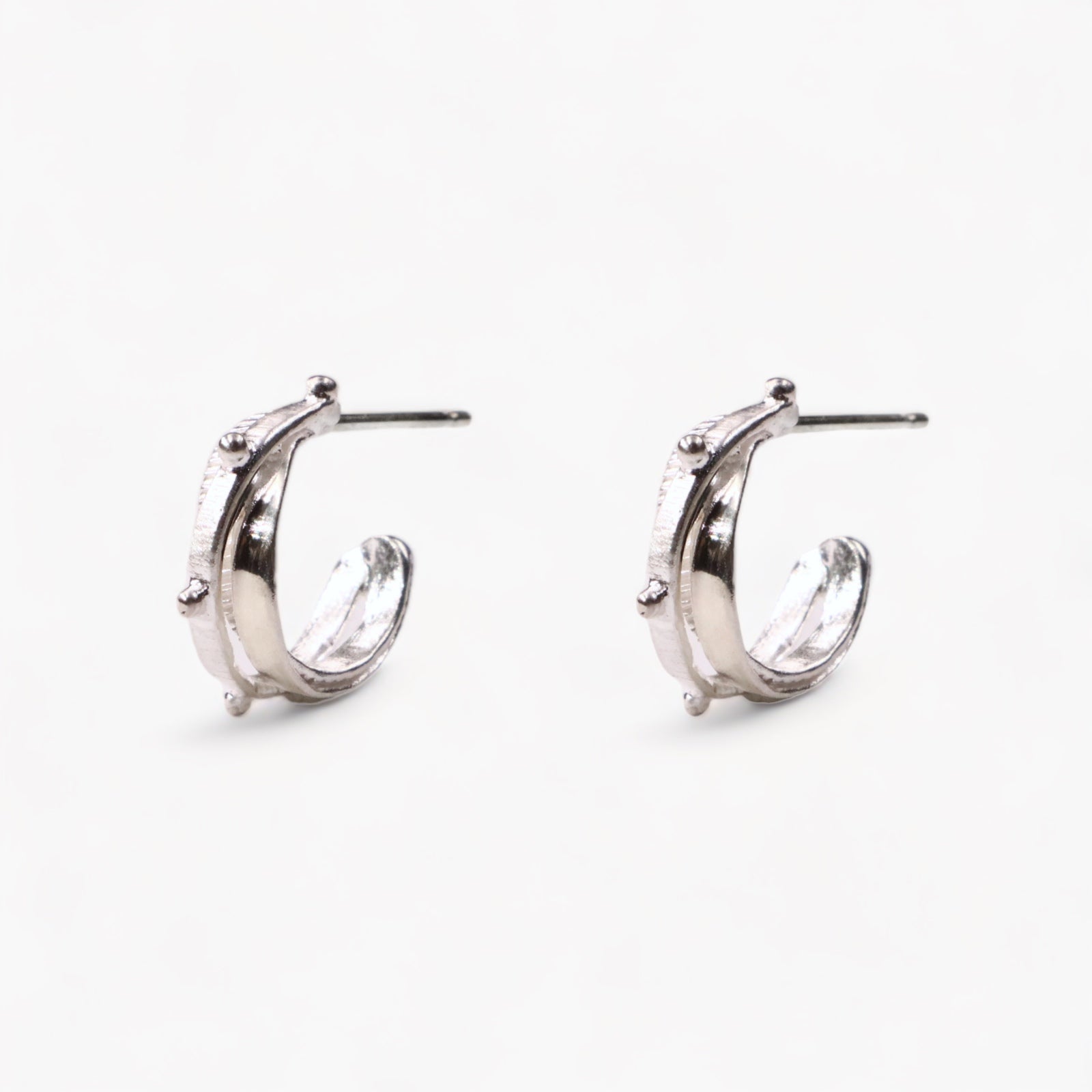 シンプルながらテクスチャーの違いやドット模様に遊び心が光るピアスは、装いにさりげない個性を加えてくれます。