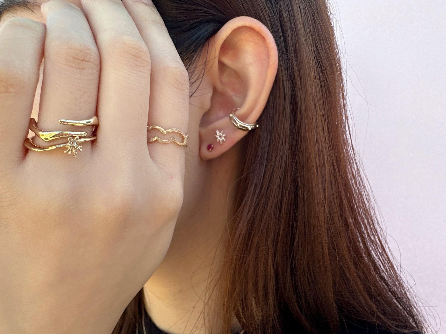 有機的なデザインが特徴的な星モチーフのピアス。