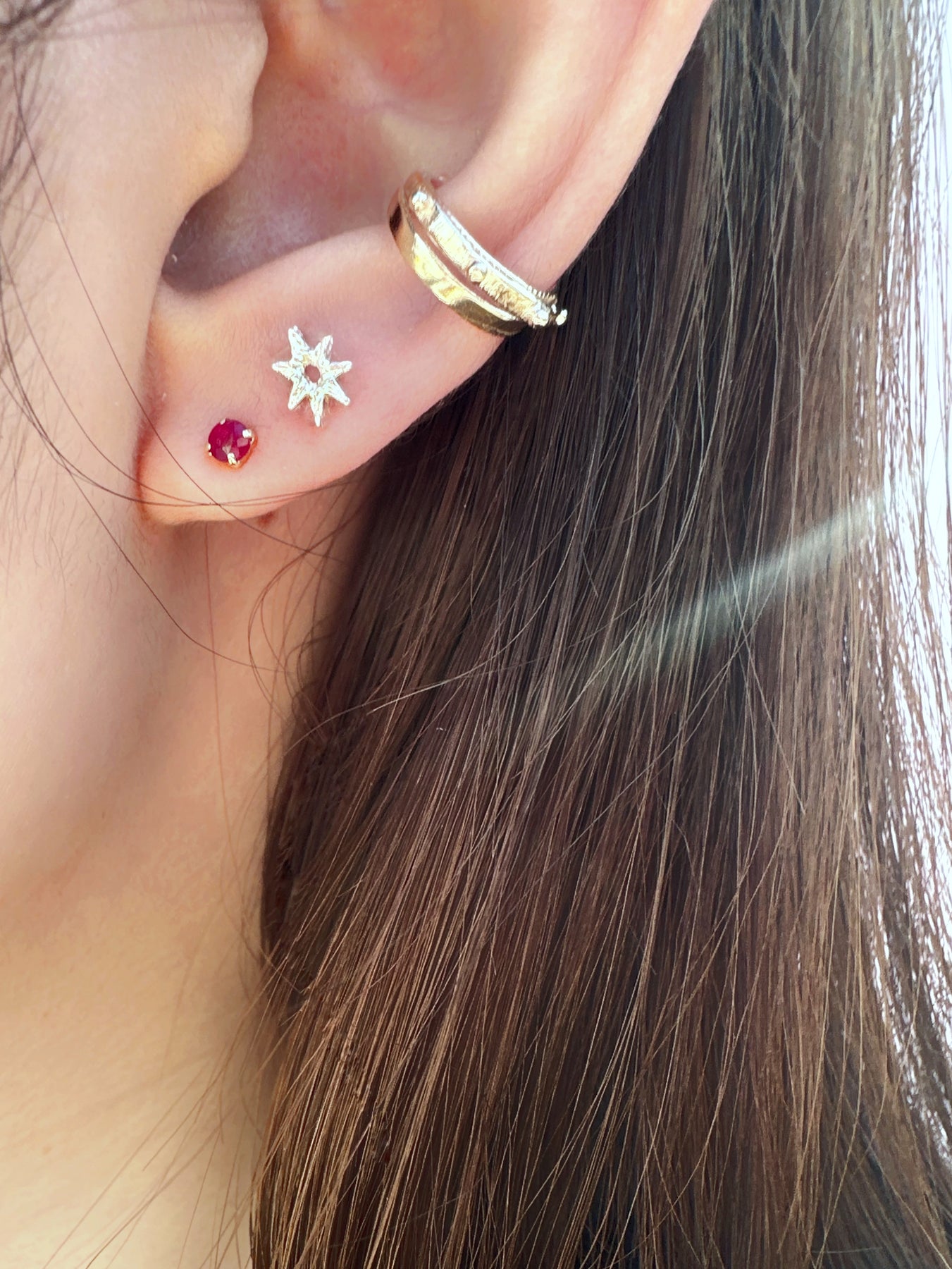 存在感がありながら、柔らかなテクスチャの星型デザインは、耳元にモダンで遊び心のある輝きを添えます。