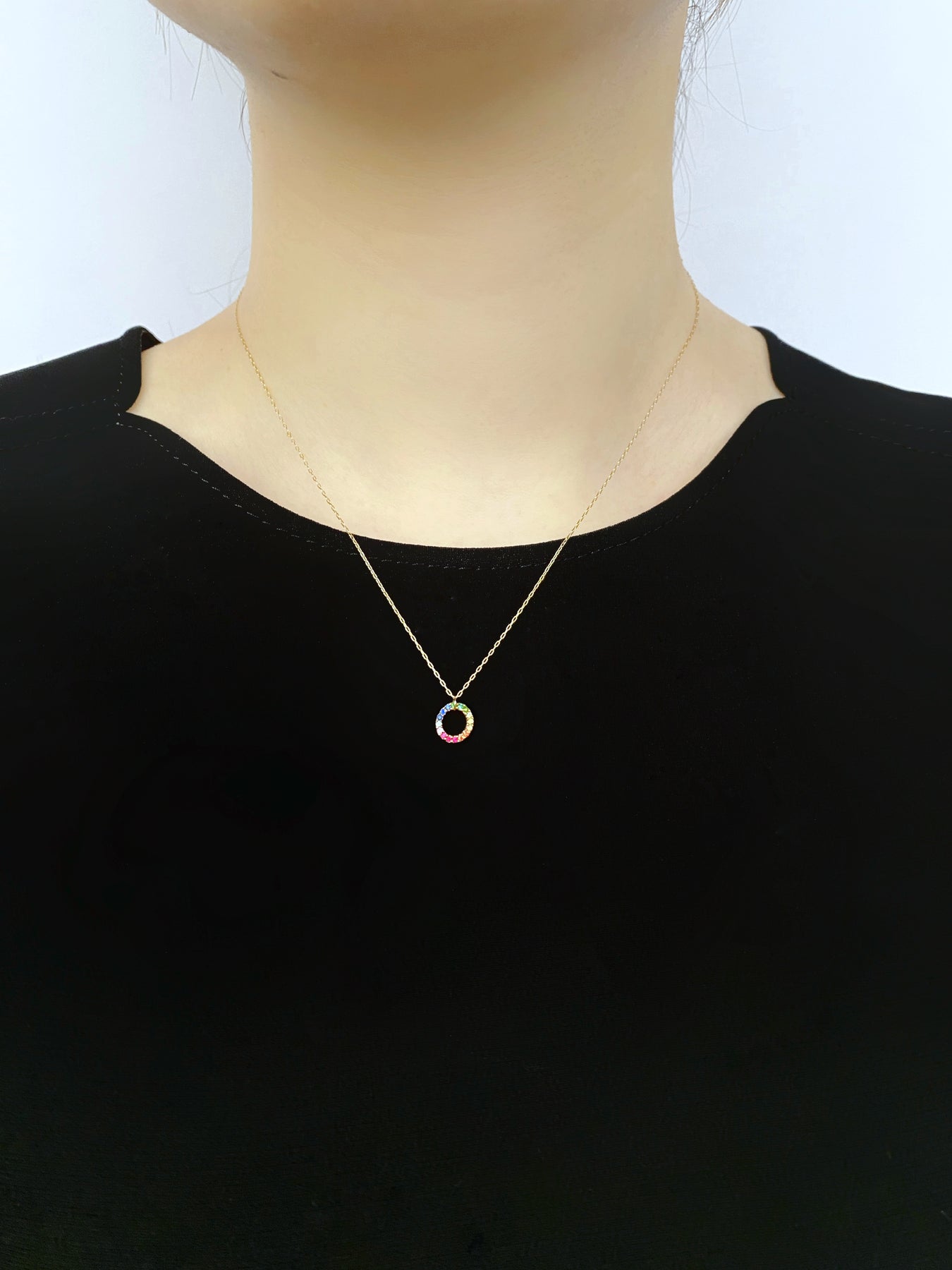 宝石をぎゅっと凝縮したような、小ぶりで愛らしいラウンドモチーフ。控えめなサイズ感ながら、本物の輝きがデコルテに上品なアクセントを添えてくれます。