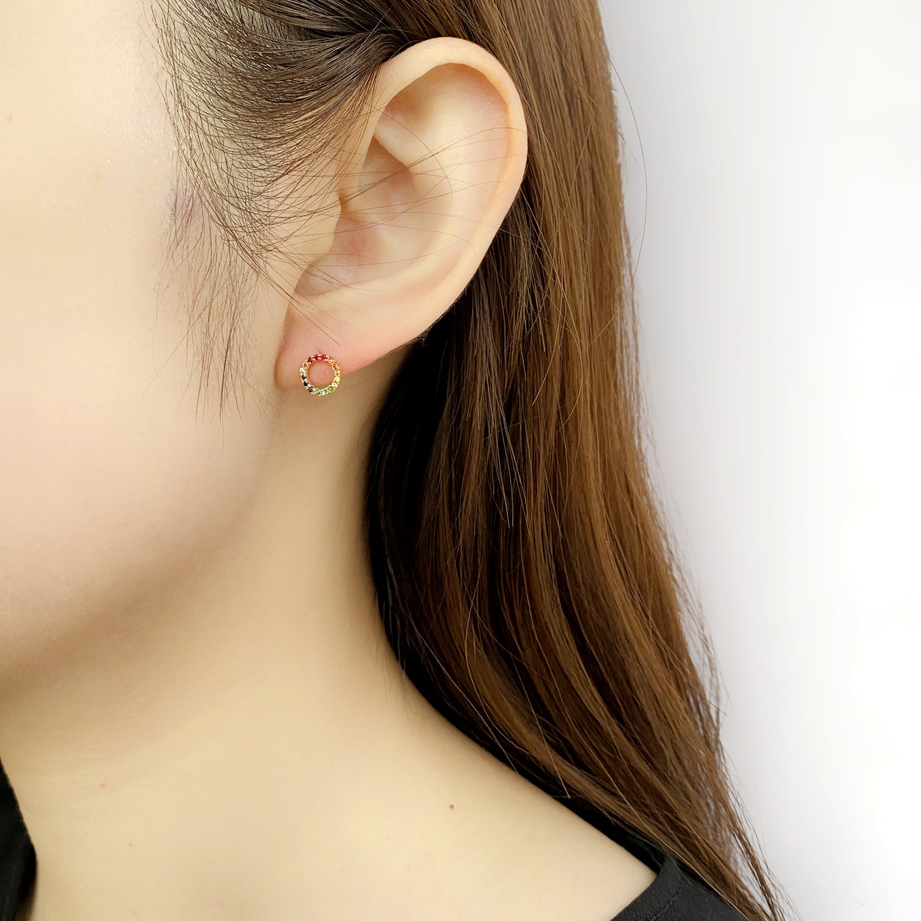 耳元に色彩を添える、小ぶりなスタッズタイプ。ピタッと収まるラウンド型は、マスクや髪型を選ばず、日常のどんなシーンにも明るく馴染みます。