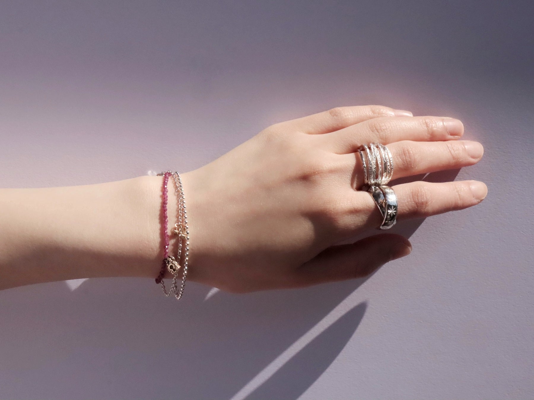 動くたびに眩い太陽の光を集めてきらめくチェーンブレスレット。ラインナップが続々と拡充中。さりげないのに、取り入れるだけでスタイリングにこなれた空気を加えてくれます。バングルや時計と重ねて新たなコーディネートをお楽しみください。
