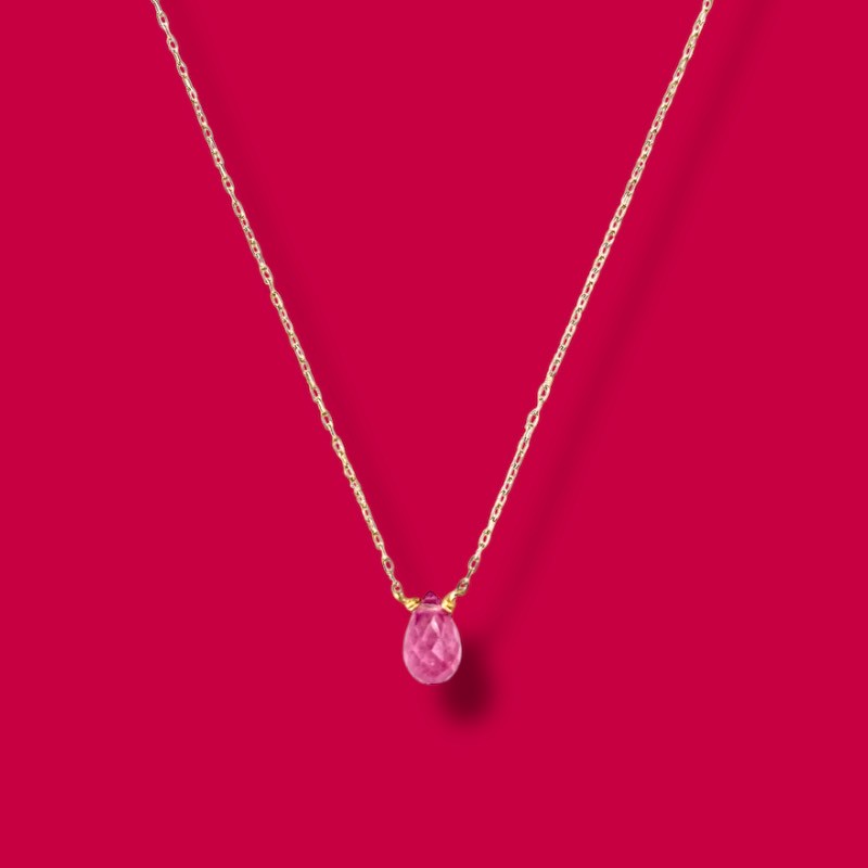 カラーストーンのピンクトパーズの10金イエローゴールドネックレス
