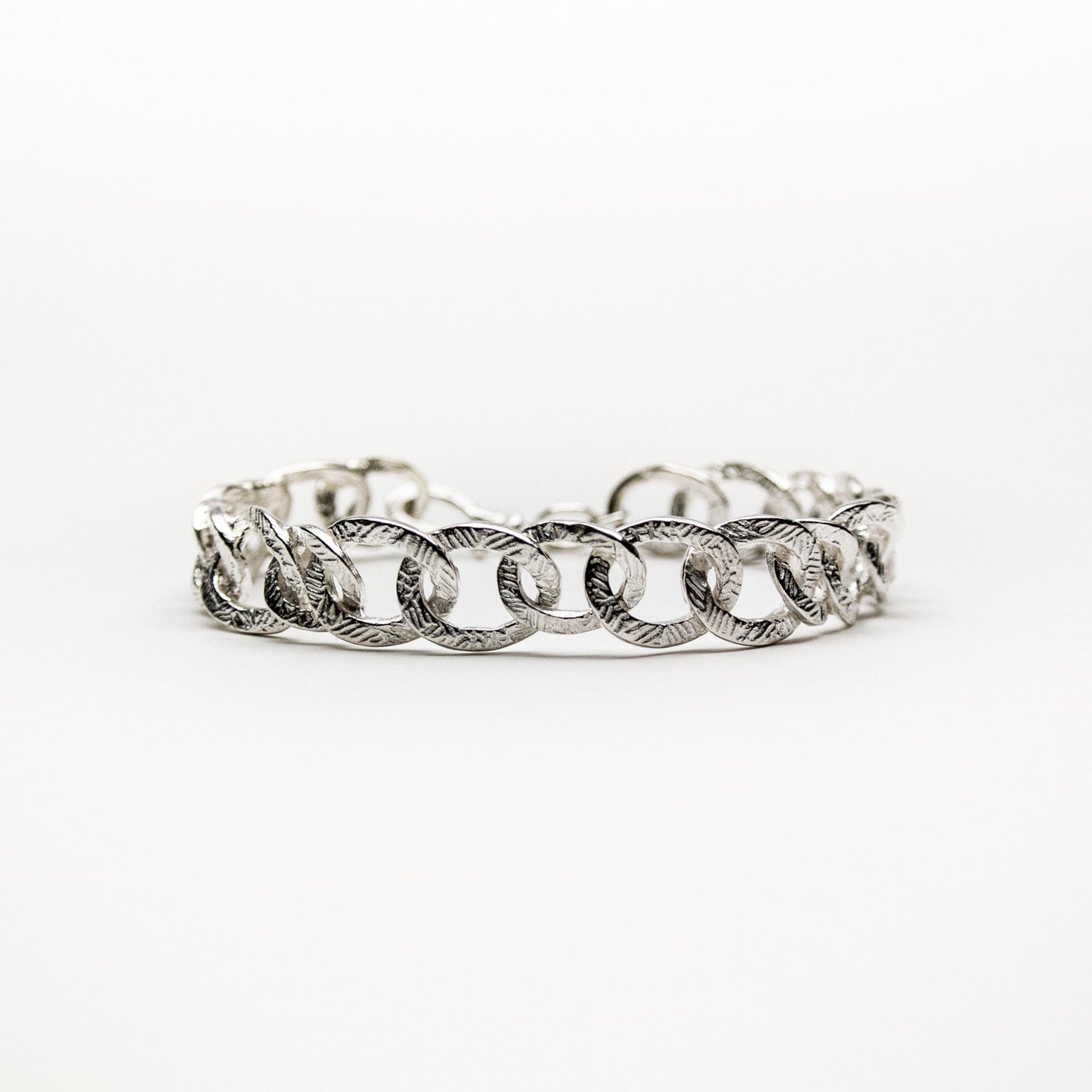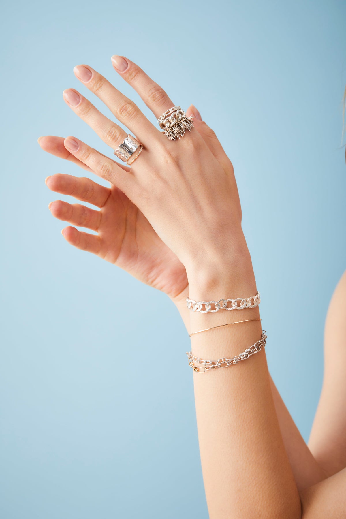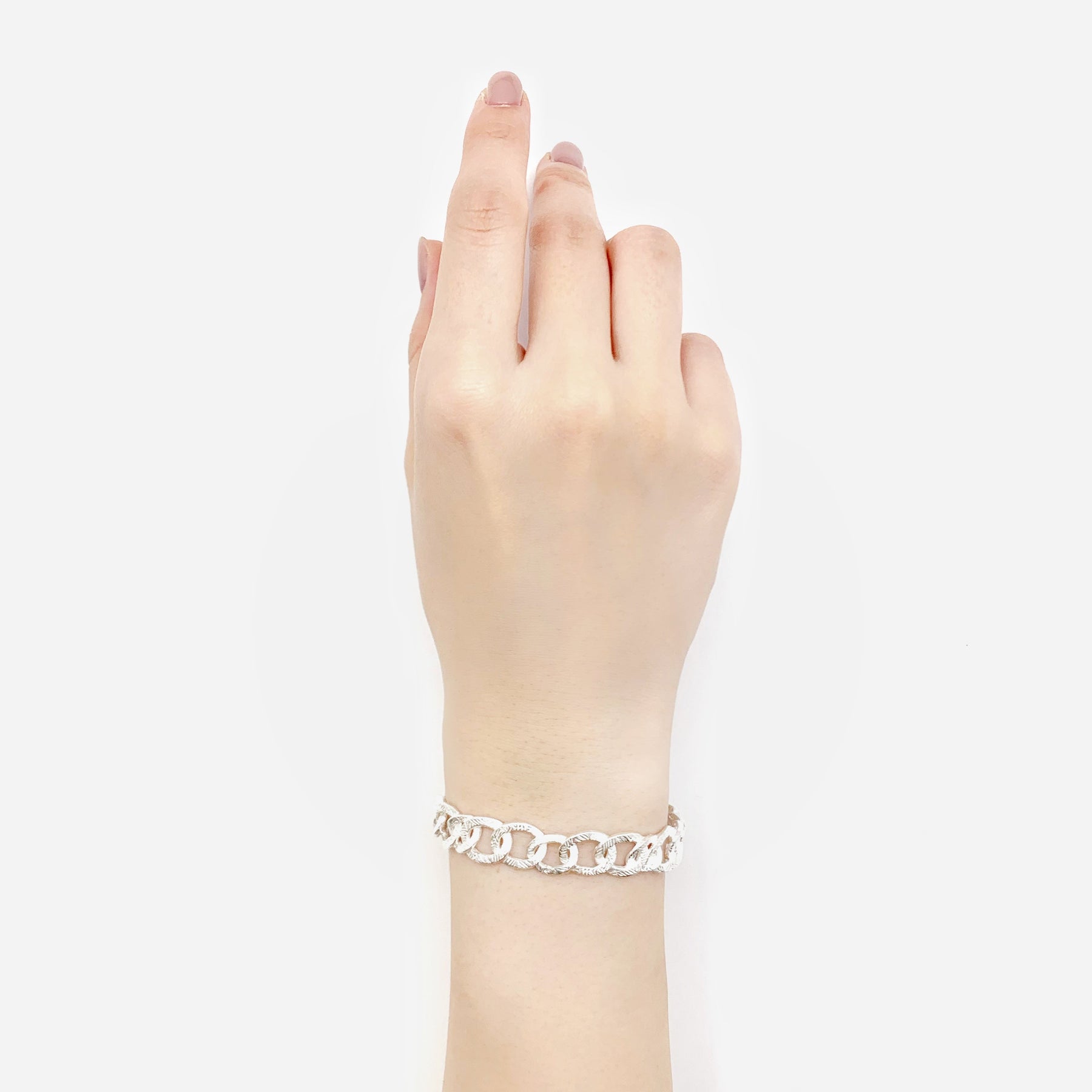 チェインズのテクスチャー入りのシルバーバングルの着用写真