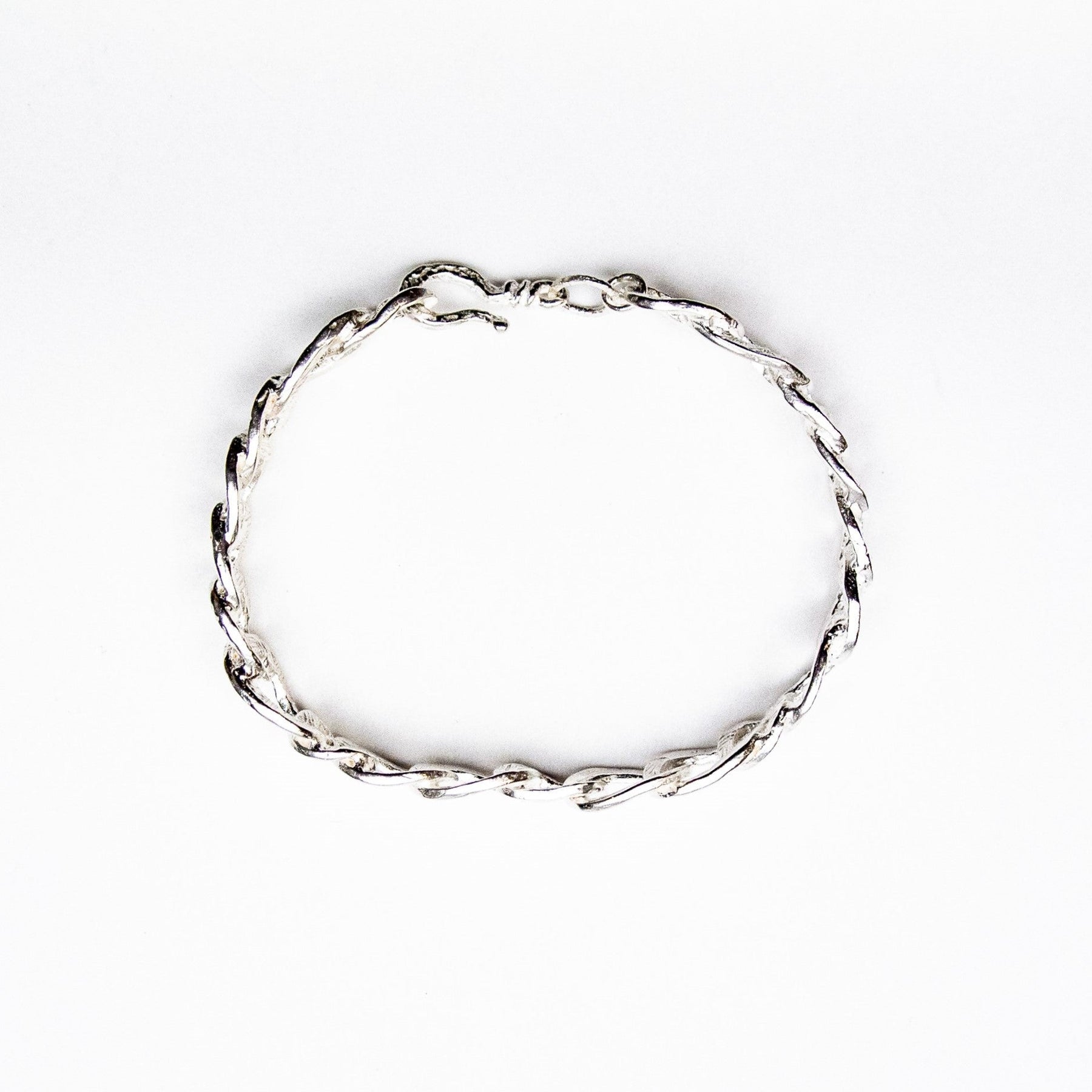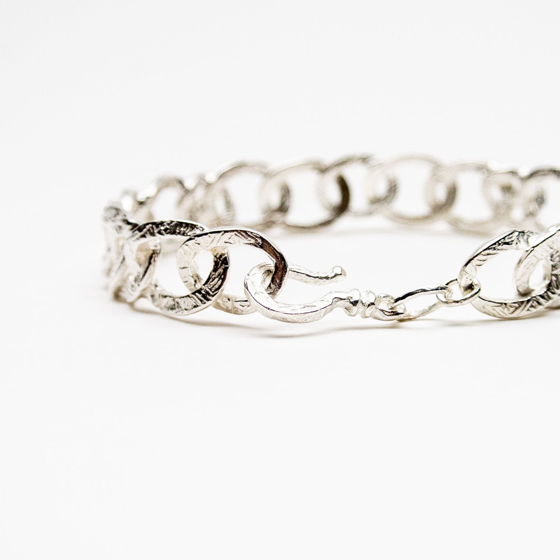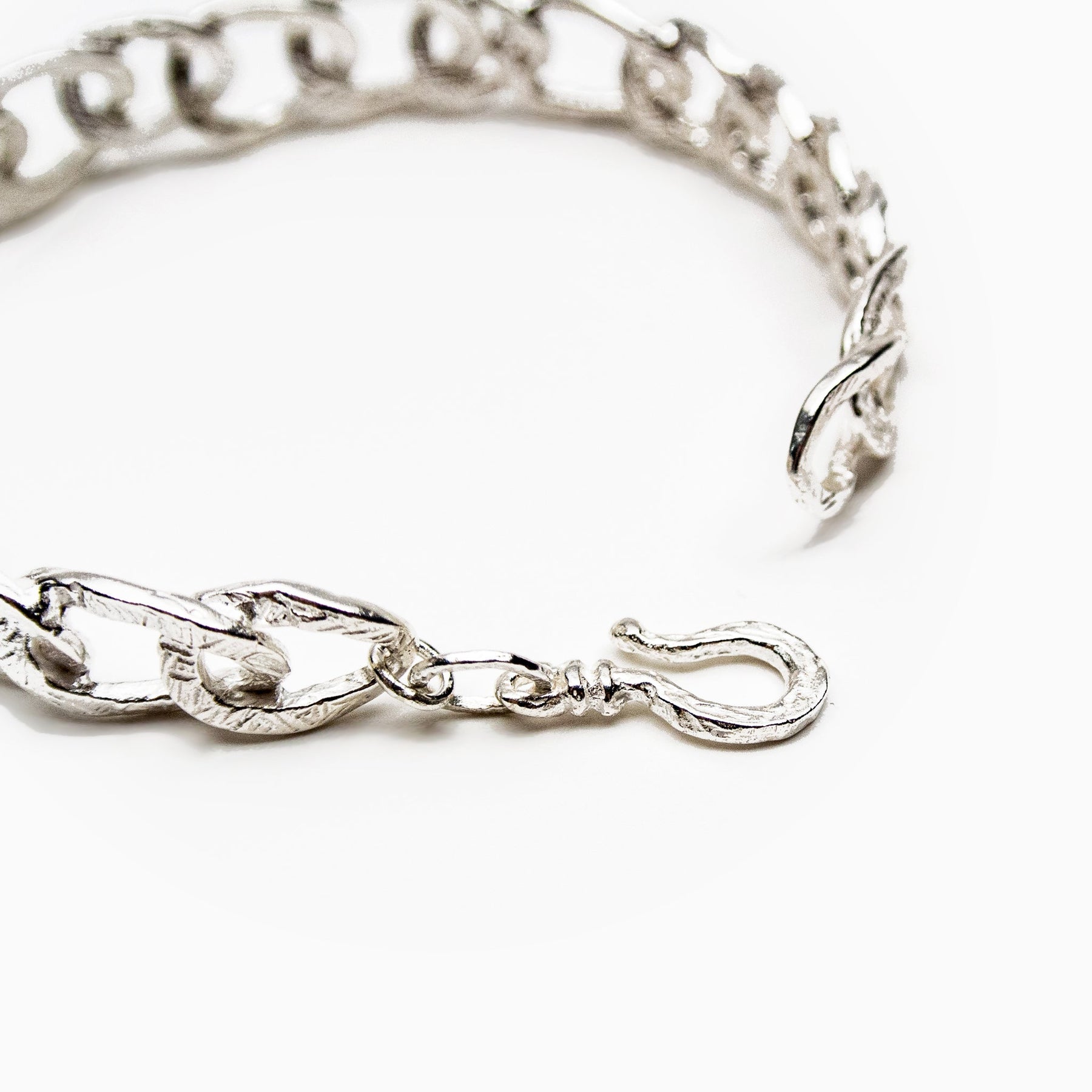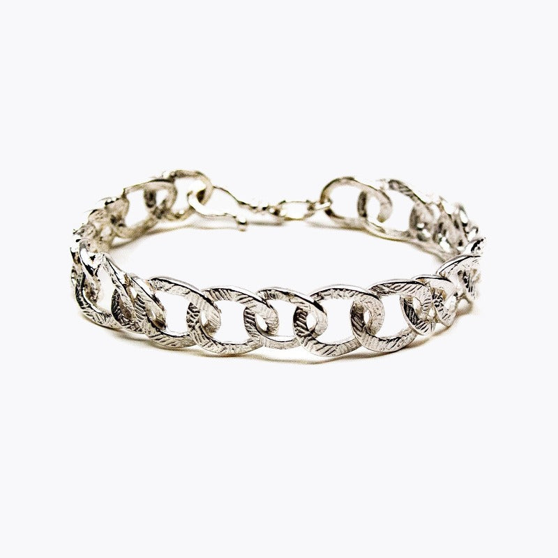 チェインズのテクスチャー入りのシルバーバングルの着用写真